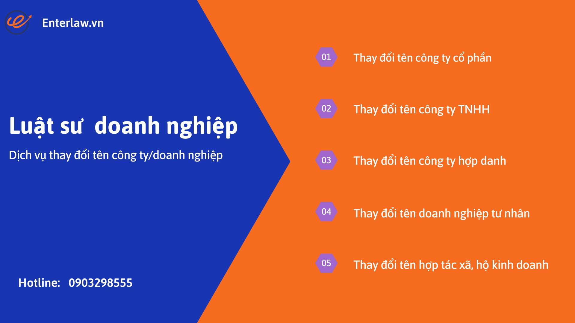 Nếu doanh nghiệp của bạn cần thay đổi giấy phép kinh doanh, thay đổi tên công ty/doanh nghiệp mà chưa tìm được công ty luật uy tín, vui lòng liên hệ với Enterlaw.vn để được tư vấn và sử dụng dịch vụ giá tốt nhất.